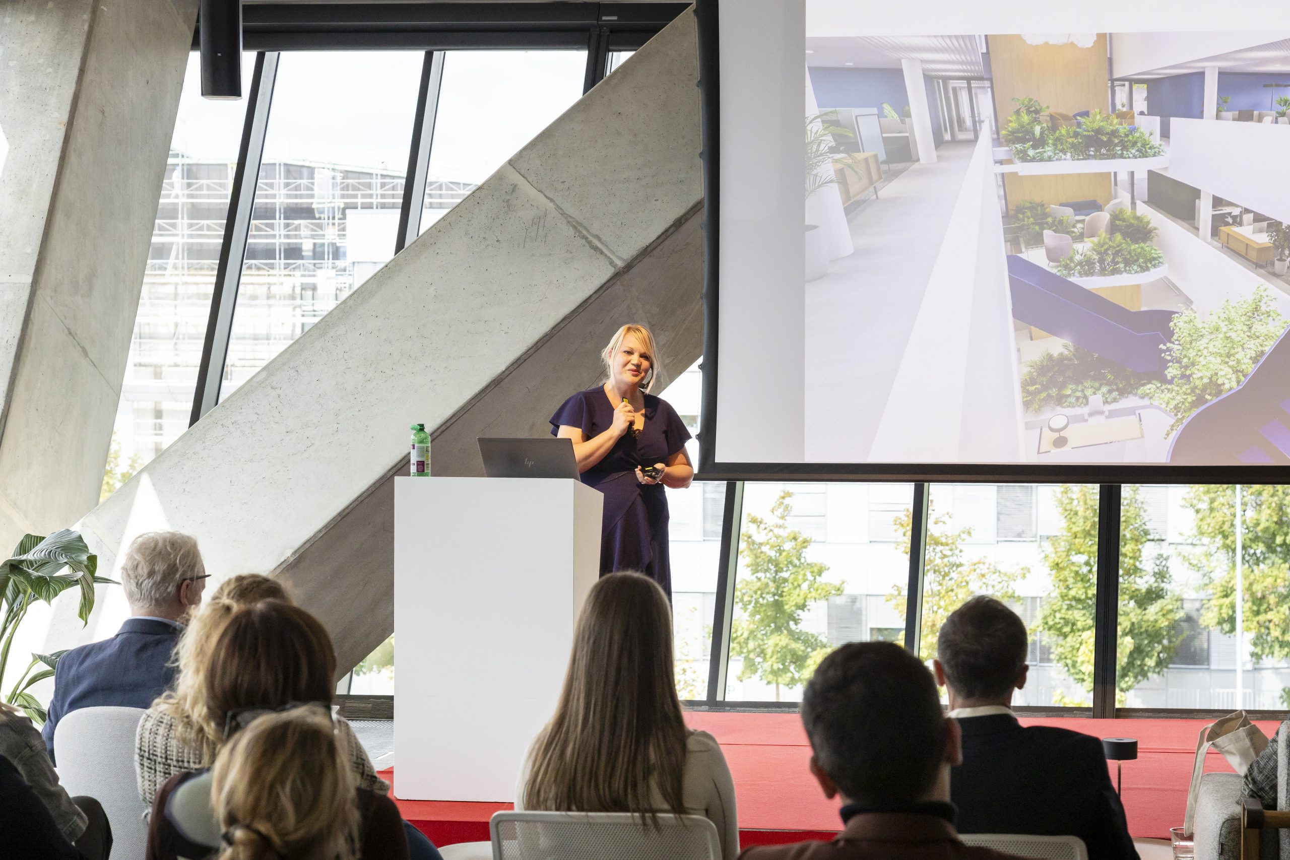 V svojem nastopu bo v praktičnem in poljudnem jeziku razložila znanstvena spoznanja o vplivu različnih delovnih prostorov na zaposlene. Na prvem mestu pa bodo strategije za optimizacijo delovnih prostorov, ki spodbujajo kreativnost in inovacije ter podpirajo sodelovanje in zbrano, osredotočeno delo.